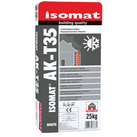 ISOMAT AK-T35 este utilizat, în combinaţie cu tencuielile MARMOCRET PLUS, ETICS PLASTER şi MARMOCRYL, pentru realizarea unui sistem de termoizolare şi finisare exterioară a construcţiilor. Este adecvat pentru lipirea plăcilor termoizolante de polistiren extrudat sau expandat, vată minerală, poliuretan, etc, pe faţadele exterioare ale clădirilor, pe suprafeţe de beton, tencuială sau zidărie de cărămidă. Armat cu plasă din fibre de sticlă, este utilizat ca masa de spaclu pentru acoperirea plăcilor termoizolante din polistiren constituind suportul ideal pentru tencuiala care urmează.