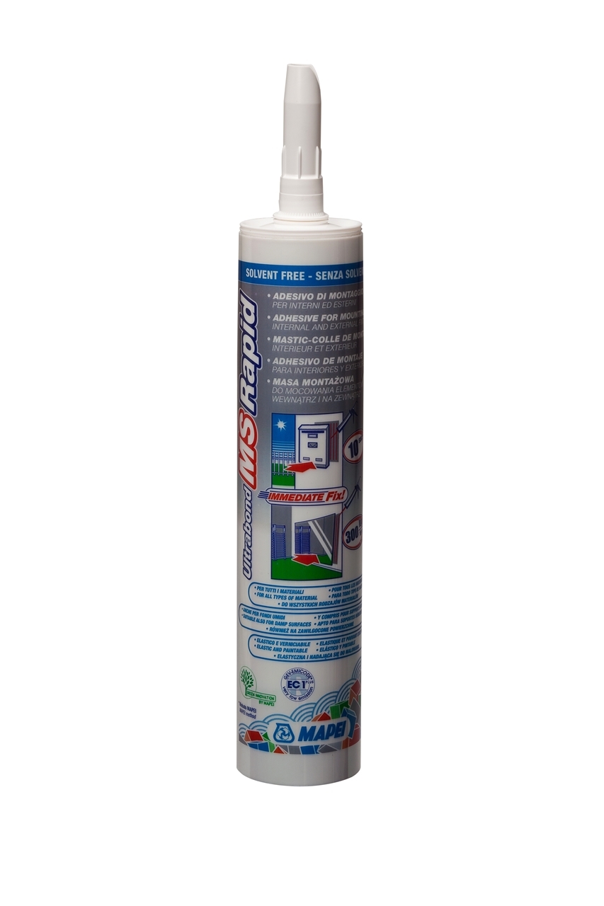 Adeziv tixotropic monocomponent, Ultrabond MS Rapid de la Mapei, recomandat la interior si/sau exterior pt fixarea rapida acolo unde este nevoie de o aderenta initiala puternica si rezistanta mecanica ridicata dupa un timp de intarire foarte scurt. Pueti lipi sau asambla o gama larga de materiale din constructii: lemn, metal, piatra, caramida, sticla, plastic rigid sau flexibil, ceramica, ...