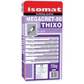 MEGACRET-50 THIXO de la Isomat este un mortar de reparații tixotropic, armat cu fibre, cu rezistențe mecanice ridicate, ideal pentru betonul puternic solicitat, la sac de 25kg