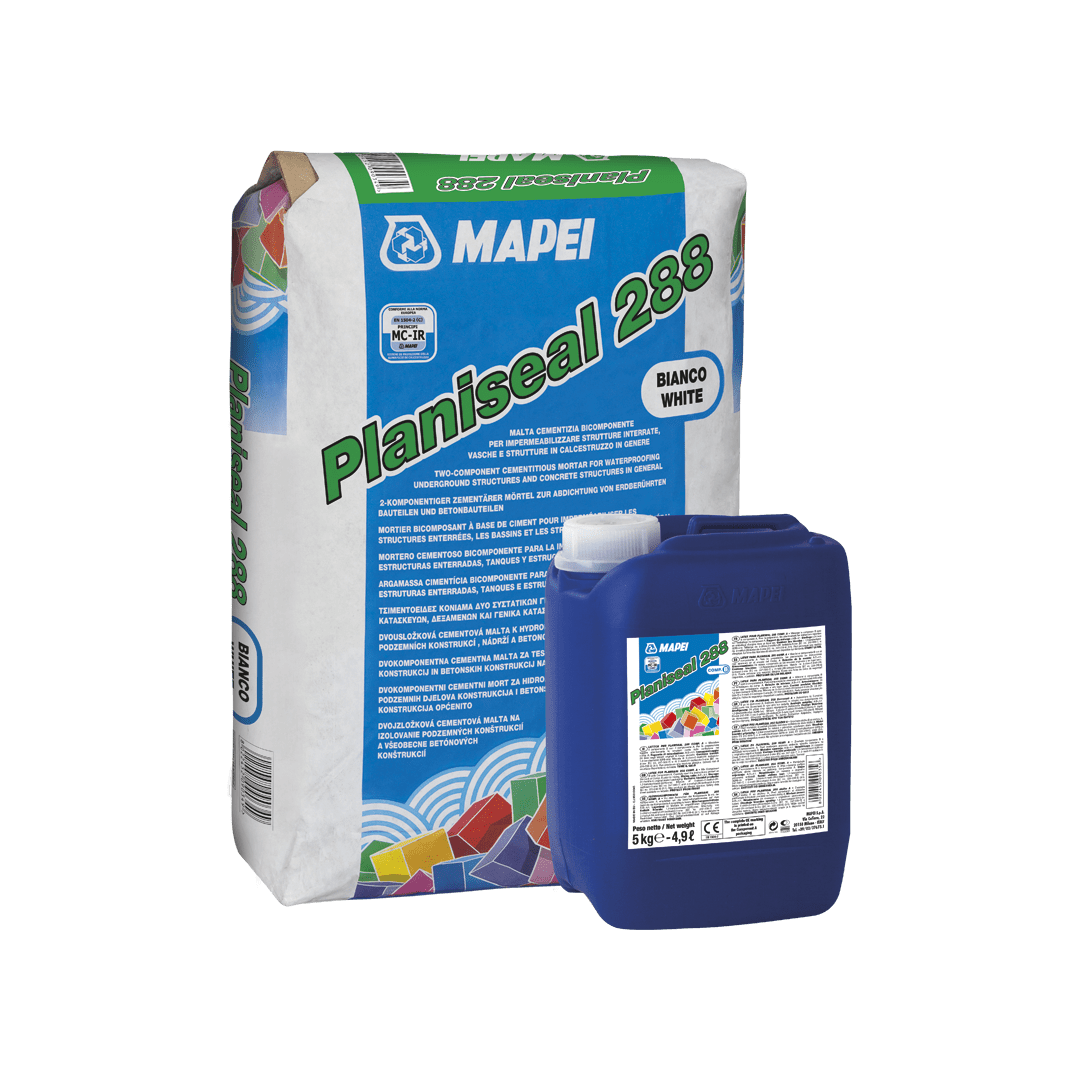 Planiseal 288 est un mortar bicomponent de la Mapei, pe bază de ciment, pentru hidroizolarea structurilor subterane și a structurilor din beton in general. Kit bicomponent (A+B) la 25kg: componenta A la sac 20kg + componenta B la bidon 5 kg